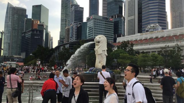 約6時間のフライトを終え、チャンギ国際空港に到着。その後は日本語の堪能な現地のガイドさんに引率していただき、バスでマーライオン公園に向かいました。待望のマーライオンとのご対面にみんなの興奮も最高潮に!各々写真を撮っていたようですが、うまく撮れたでしょうか?