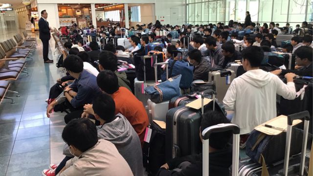 昼頃の機内食は、チキンカレーかすき焼きを選択。サフランライスを使ったカレーは普段食べ慣れていないせいか、戸惑っていた生徒が多かったようでした。